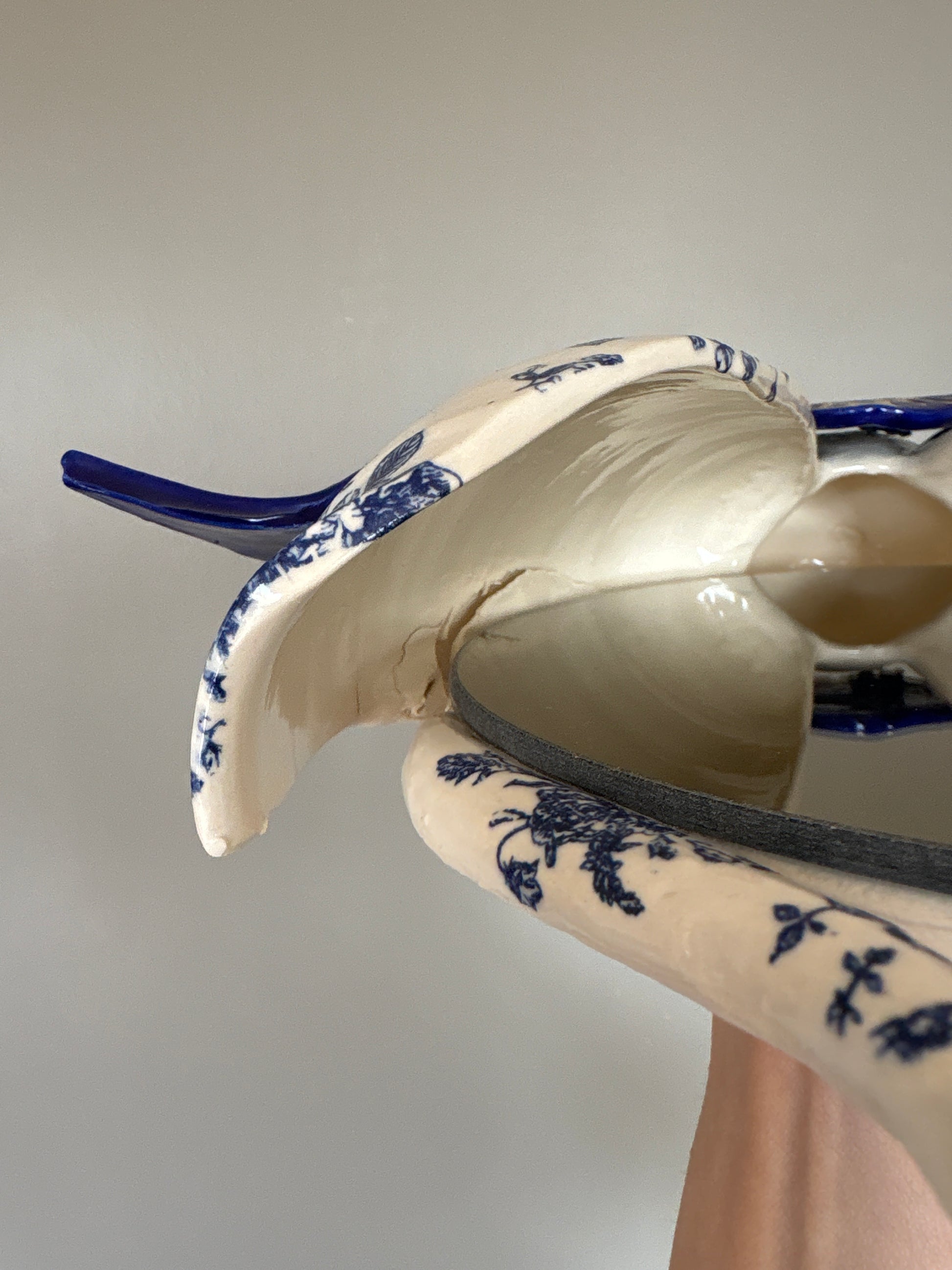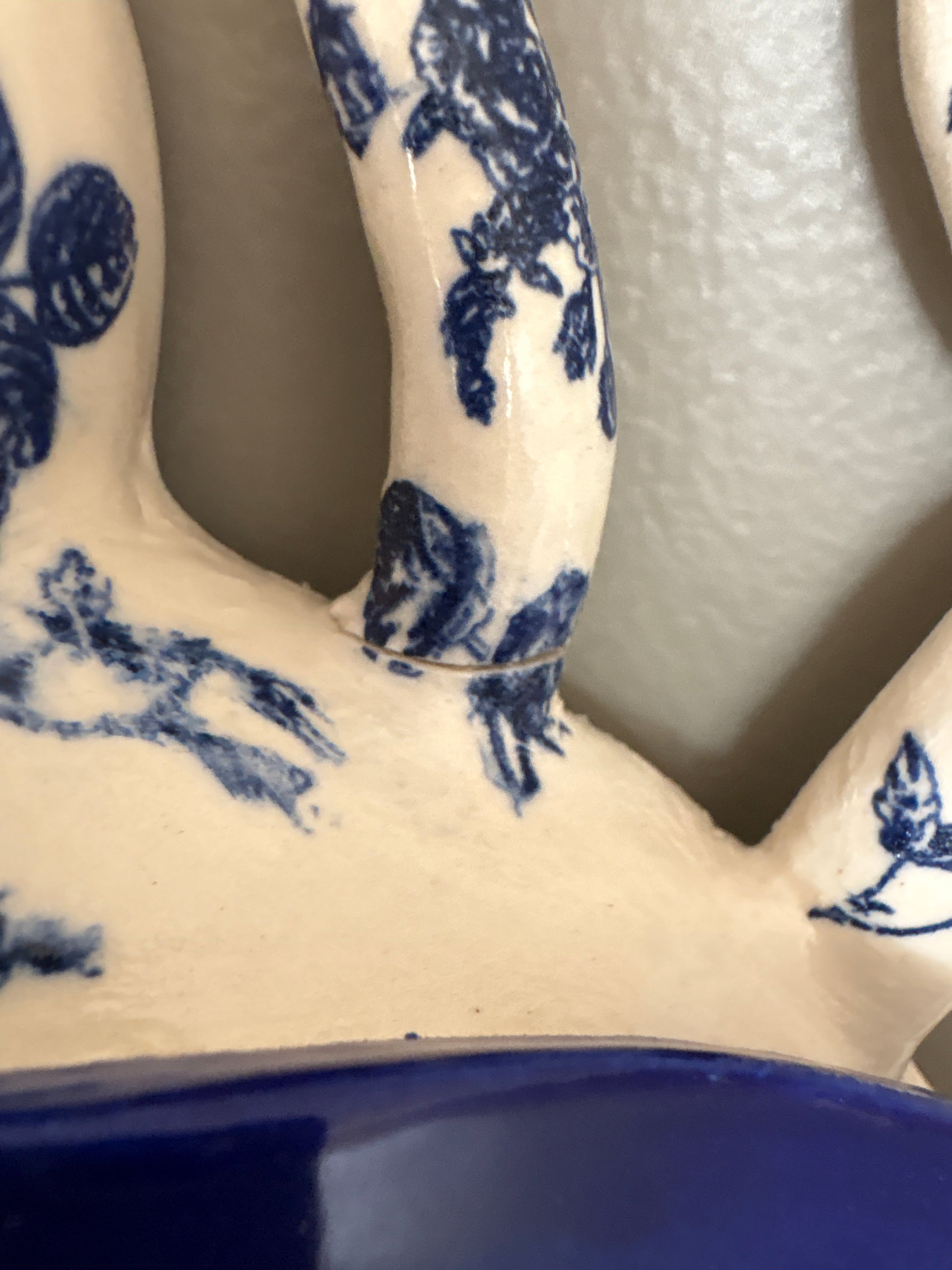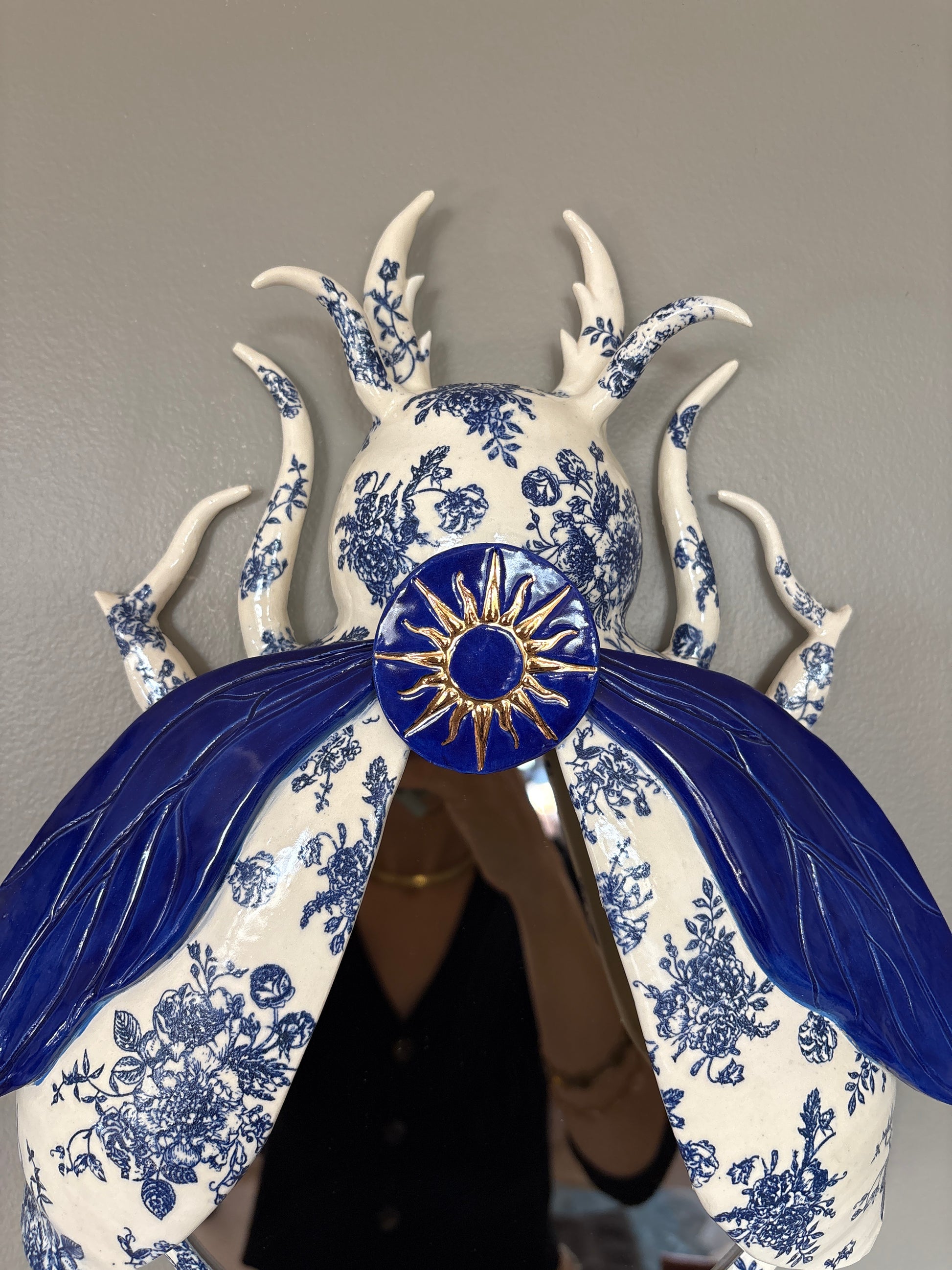 Each piece is personally handcrafted and one of a kind. Sizes vary, and imperfections are likely to be present because of the handmade nature of the piece. Each piece is wheel thrown, trimmed, assembled, fired, glazed, fired, lustred (if gold is present), and fired again. The process takes a month to two months to complete.