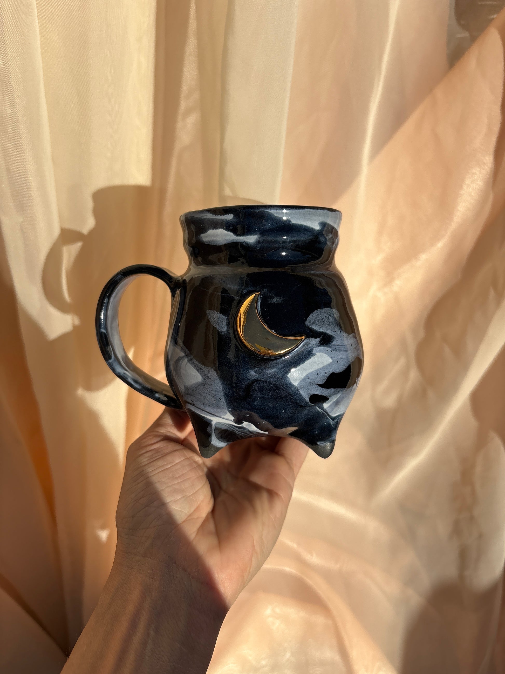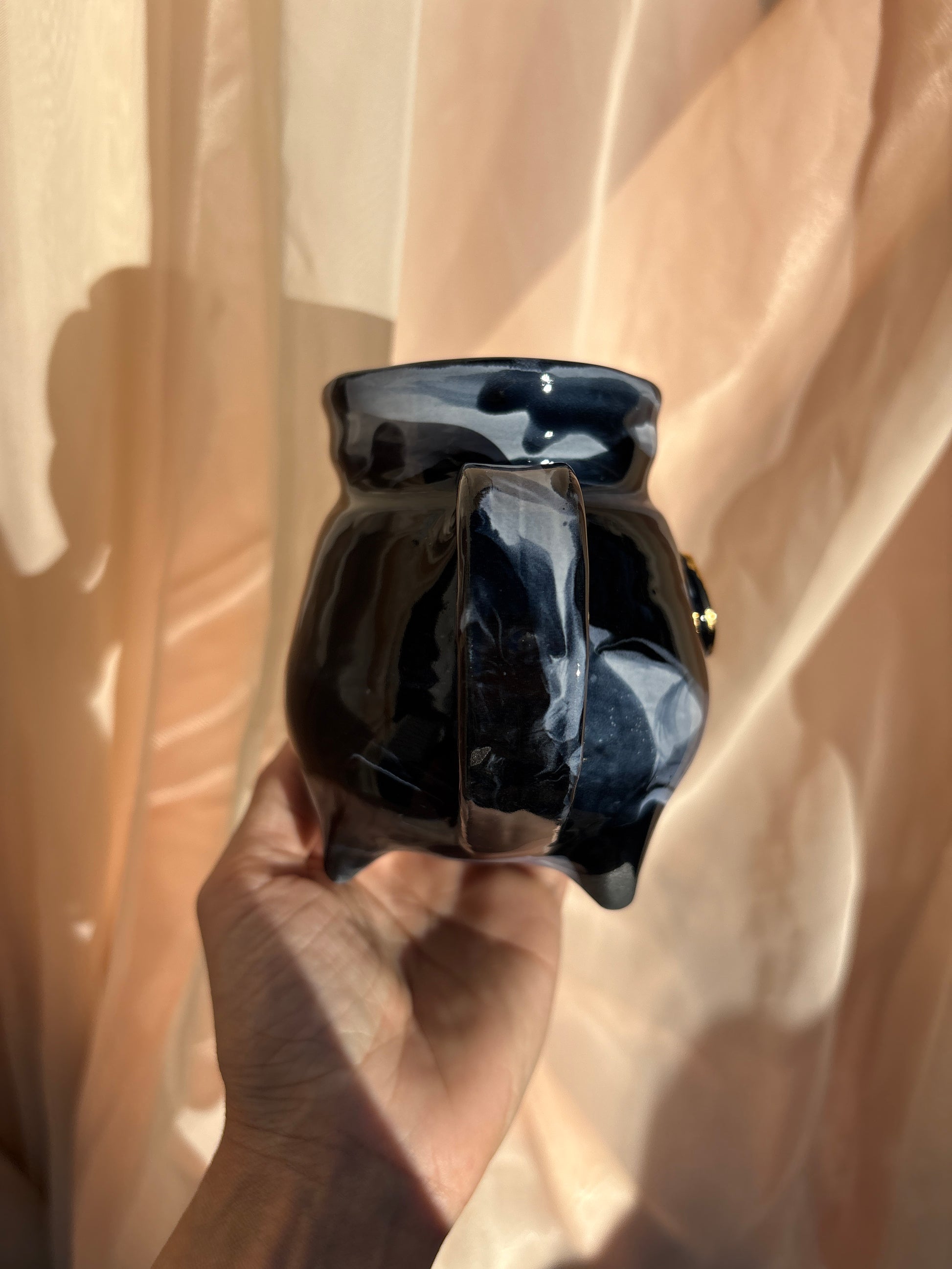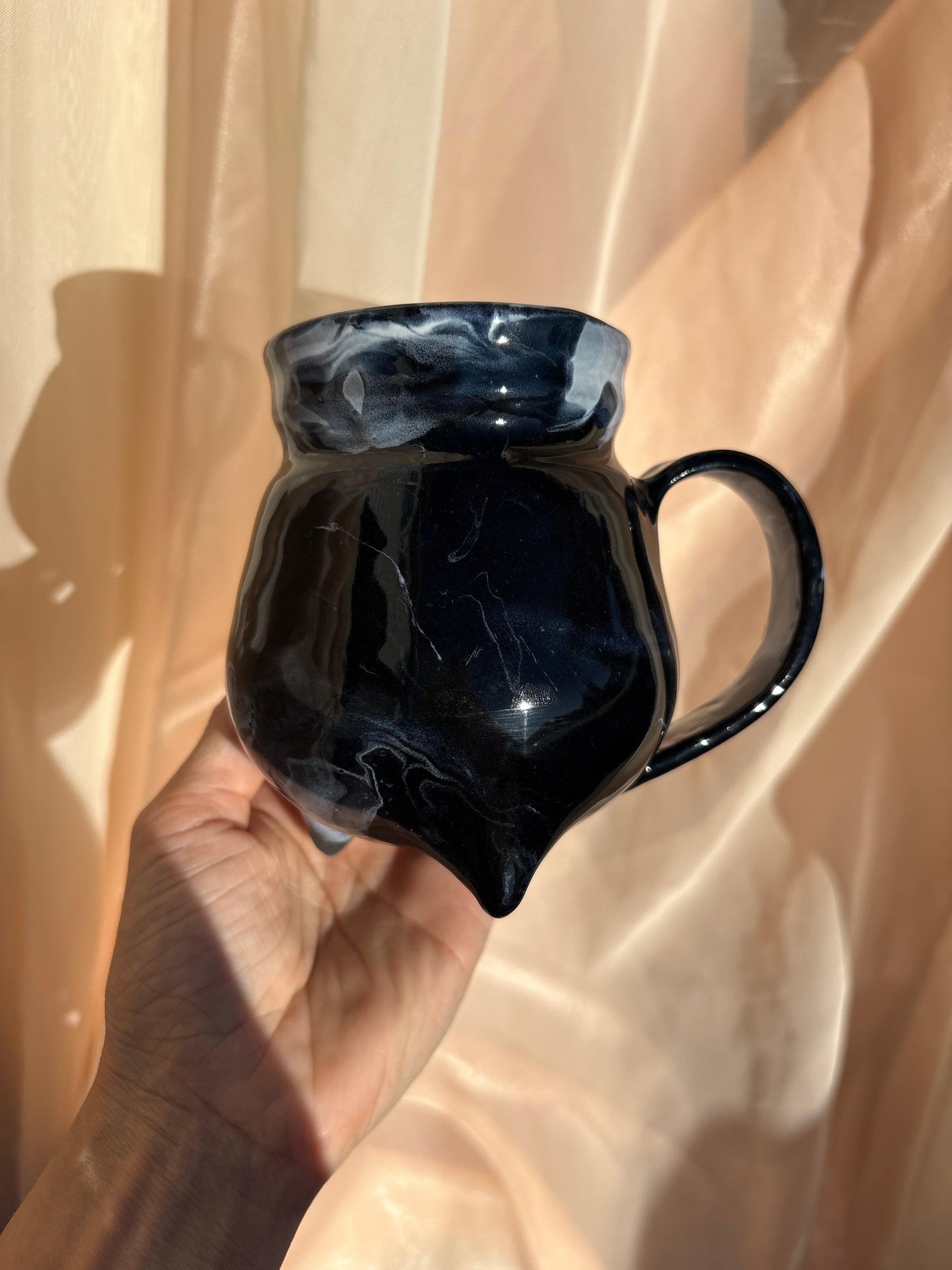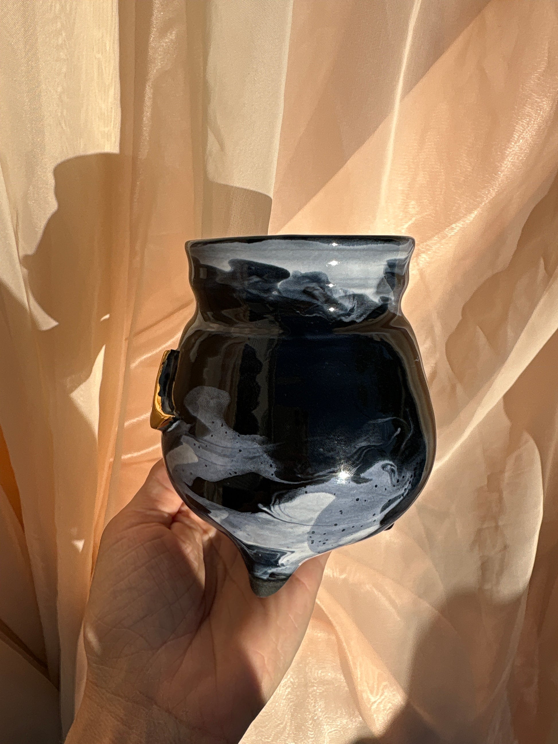 A cauldron vessel of quiet power featuring swirls of black and creamy white to evoke the unseen arcana that lives in the unknown - subtle, elegant, and ever-growing. Let this mug be your ritual companion to help ground you in moments of reflection, solitude, and regulation with every sip.