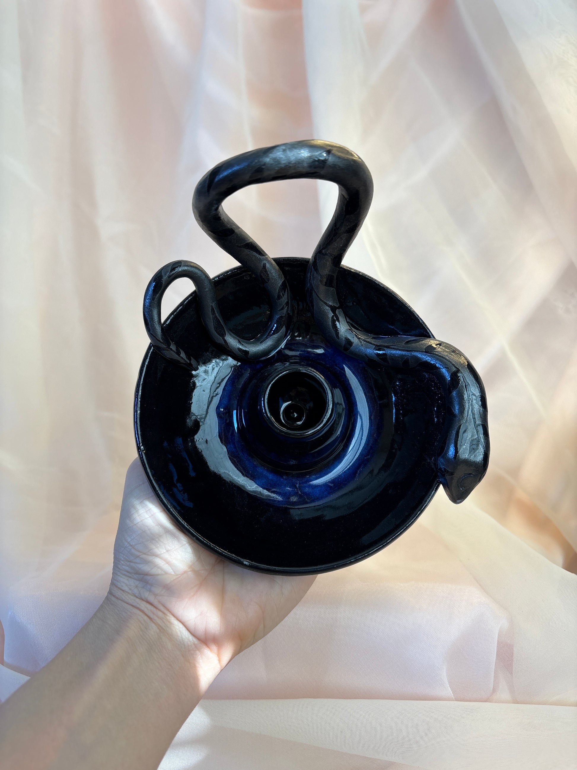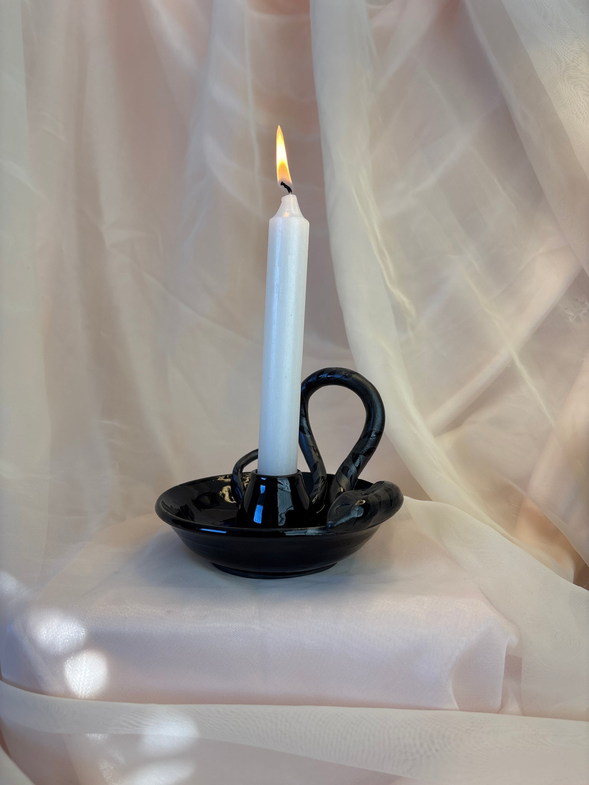 A hand-crafted ceramic candle holder designed to cradle light, casting a gentle glow for quiet moments and ritual evenings.