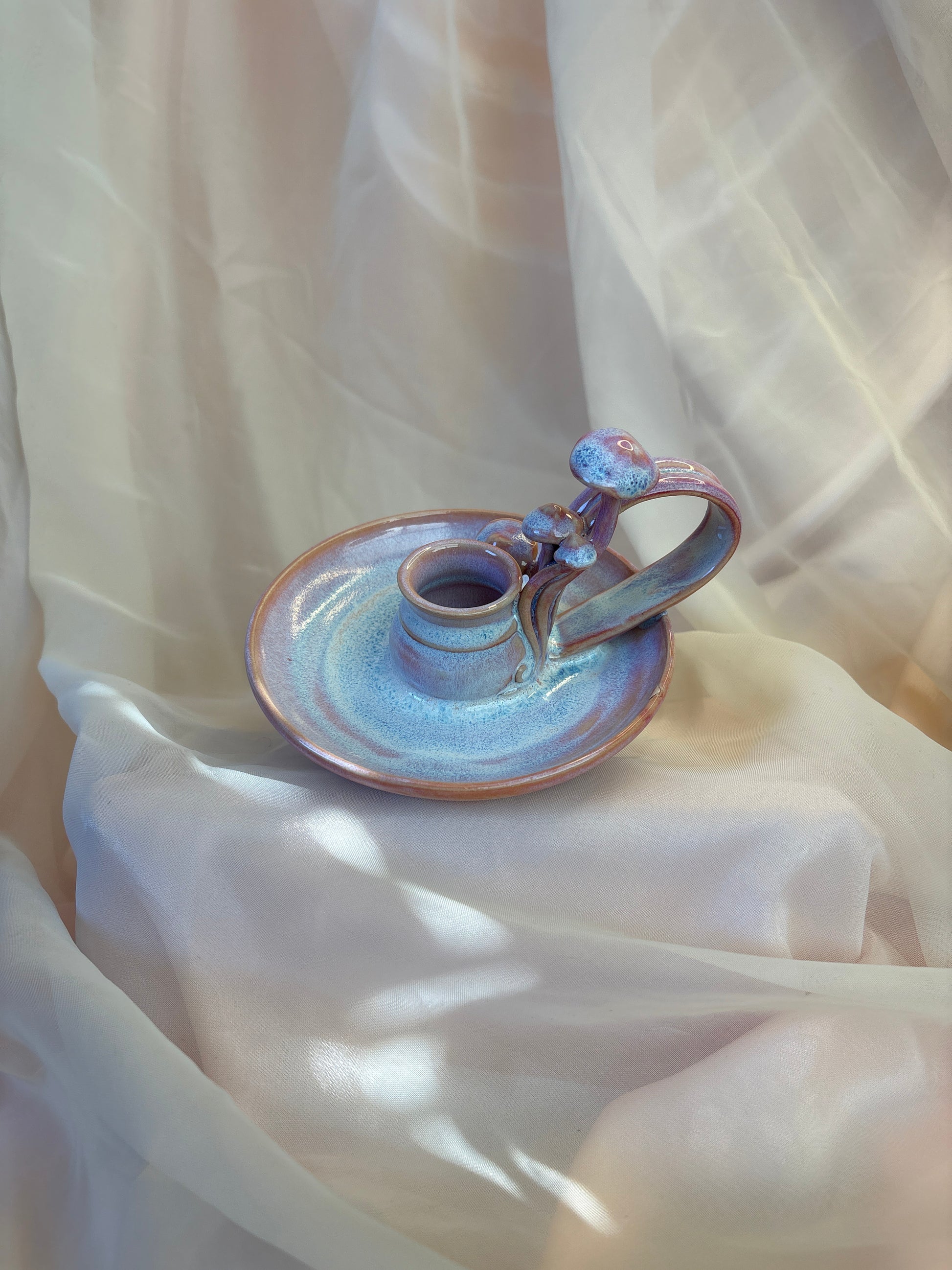A hand-crafted ceramic candle holder designed to cradle light, casting a gentle glow for quiet moments and ritual evenings.