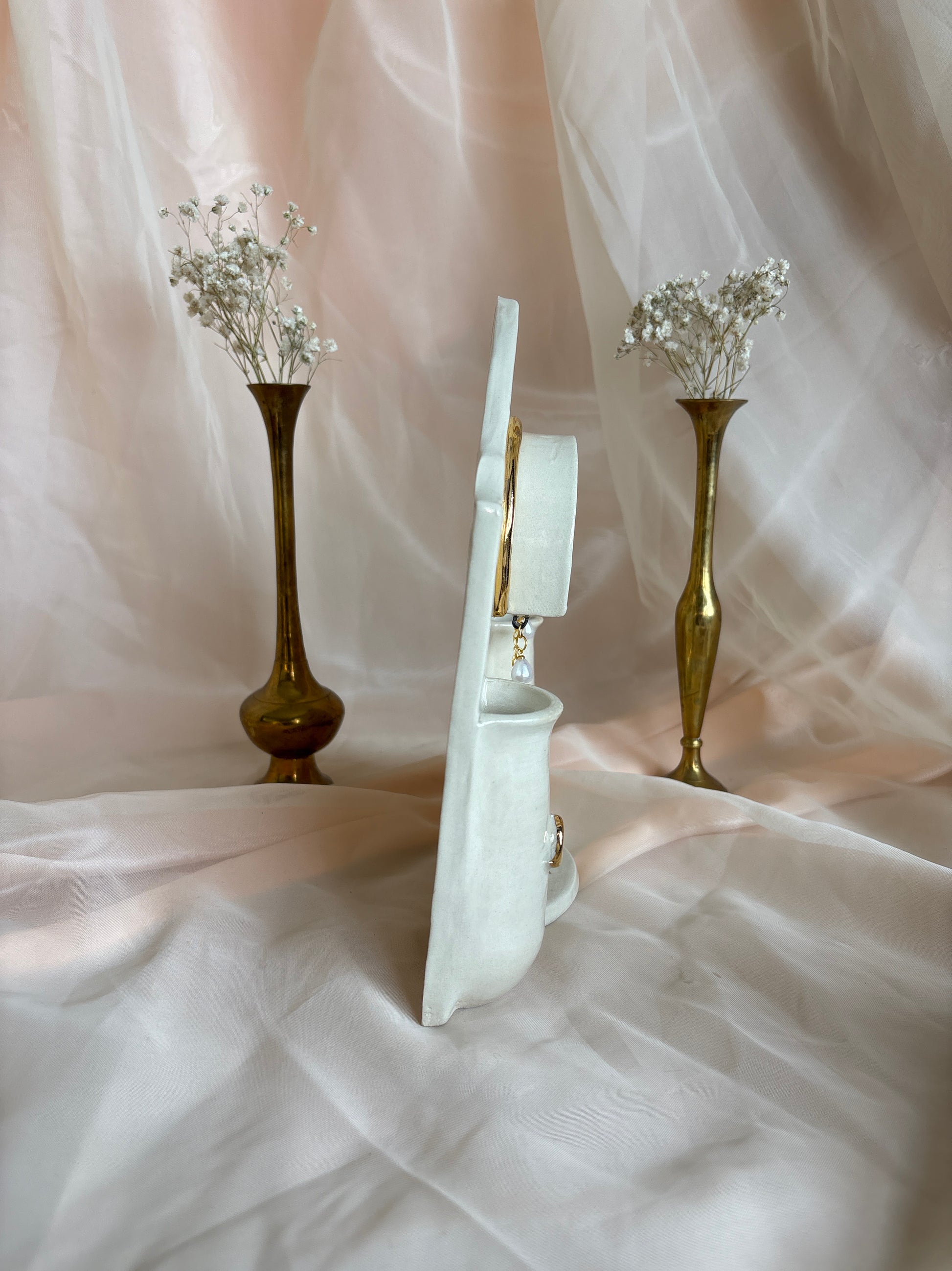 Honor your sacred spaces and corners with this handcrafted flower altar. Designed to serve as a quiet catalyst for your meditations, readings, and connections. Make offerings to your ancestors, set your intentions, or use as an incense holder to cleanse your space.