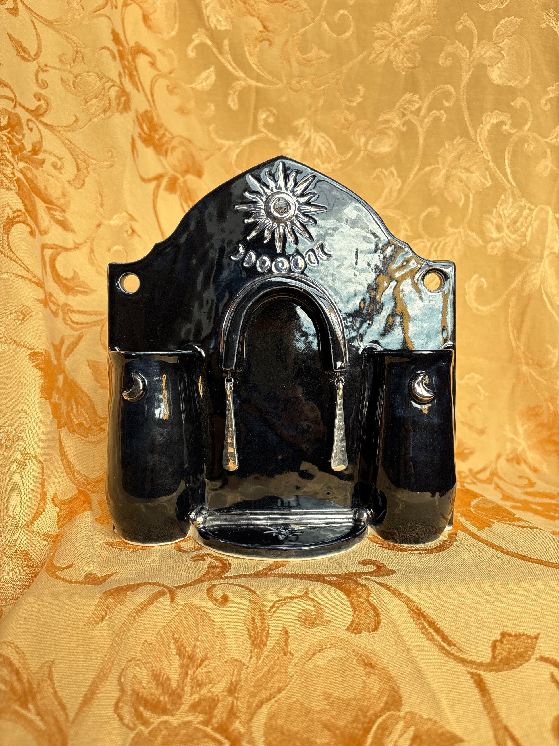 ***discounted for a light glaze application - some spots of the altar are blacker than others Honor your sacred spaces and corners with this handcrafted flower altar. Designed to serve as a quiet catalyst for your meditations, readings, and connections. Make offerings to your ancestors, set your intentions, or use as an incense holder to cleanse your space.