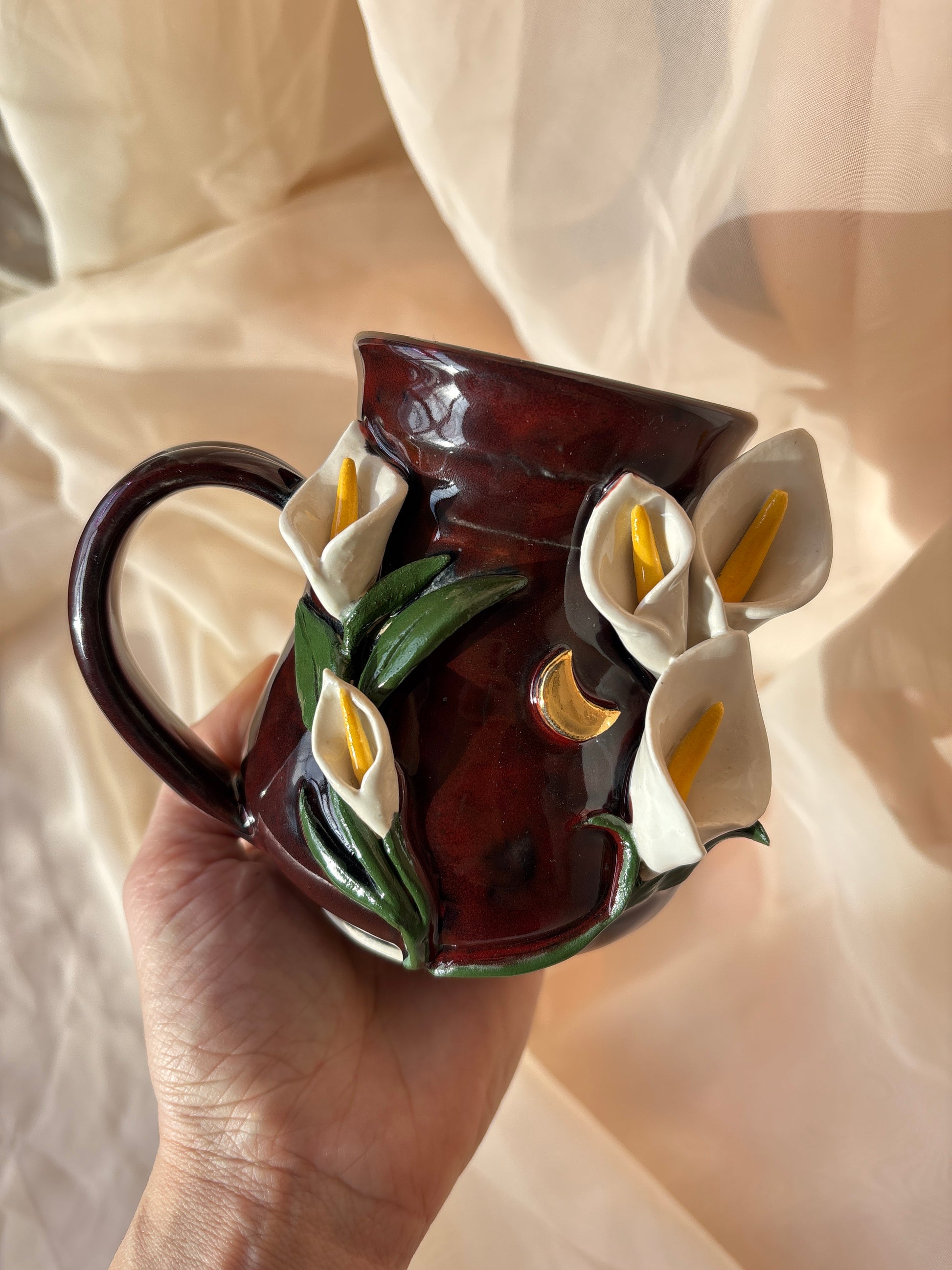 This hand-crafted ceramic mug features a calla lily, a symbol of quiet transformation paired with lunar energy that honors cycles, stillness, and renewal.