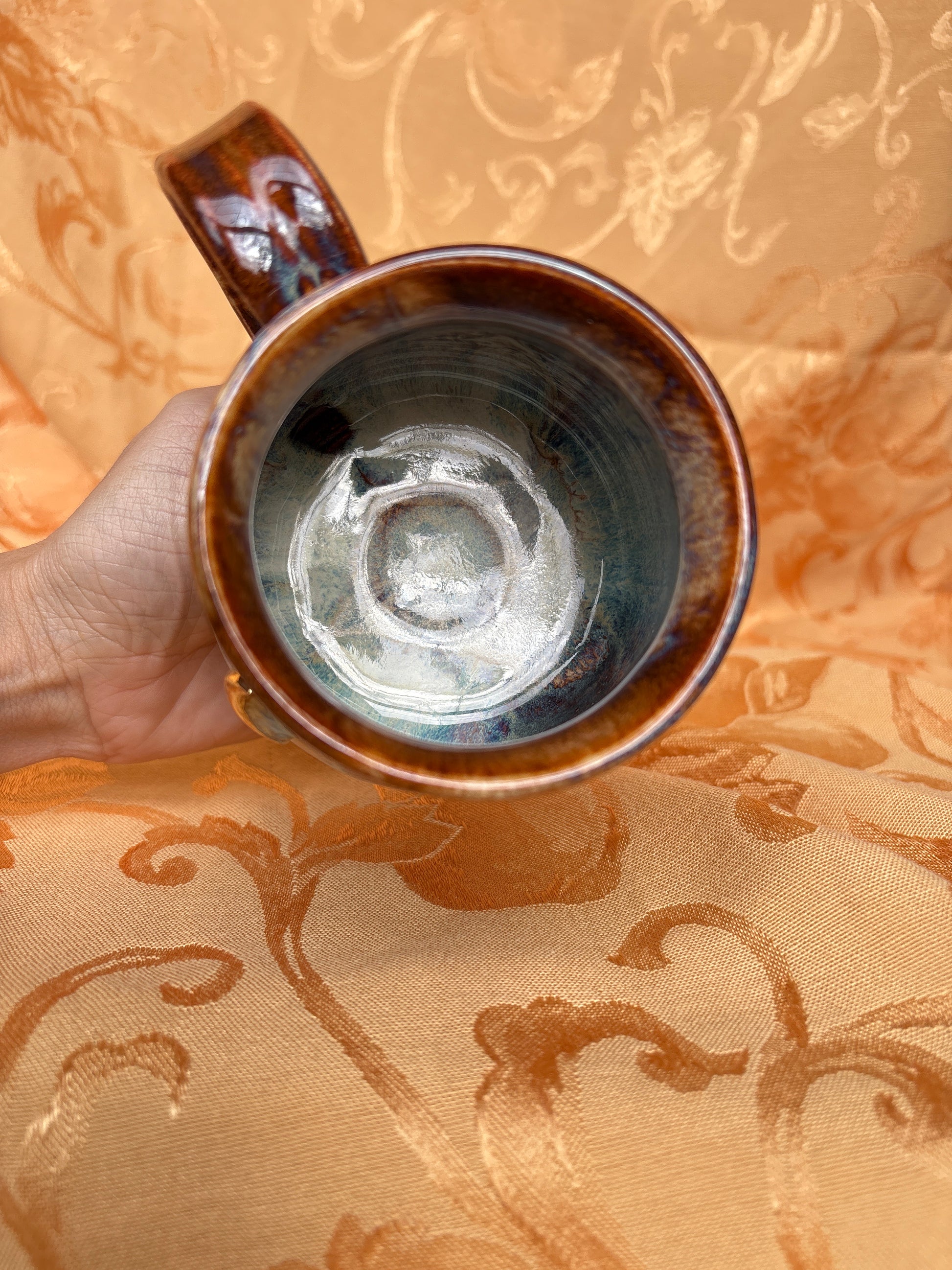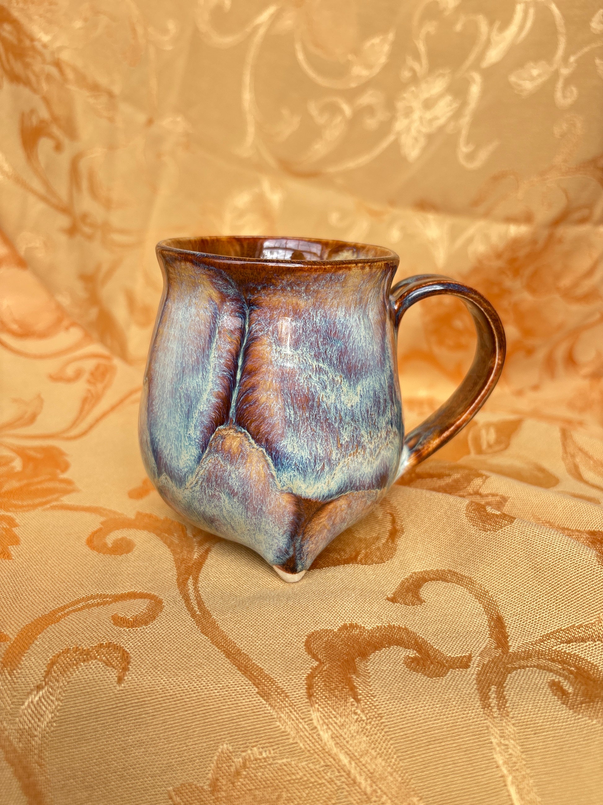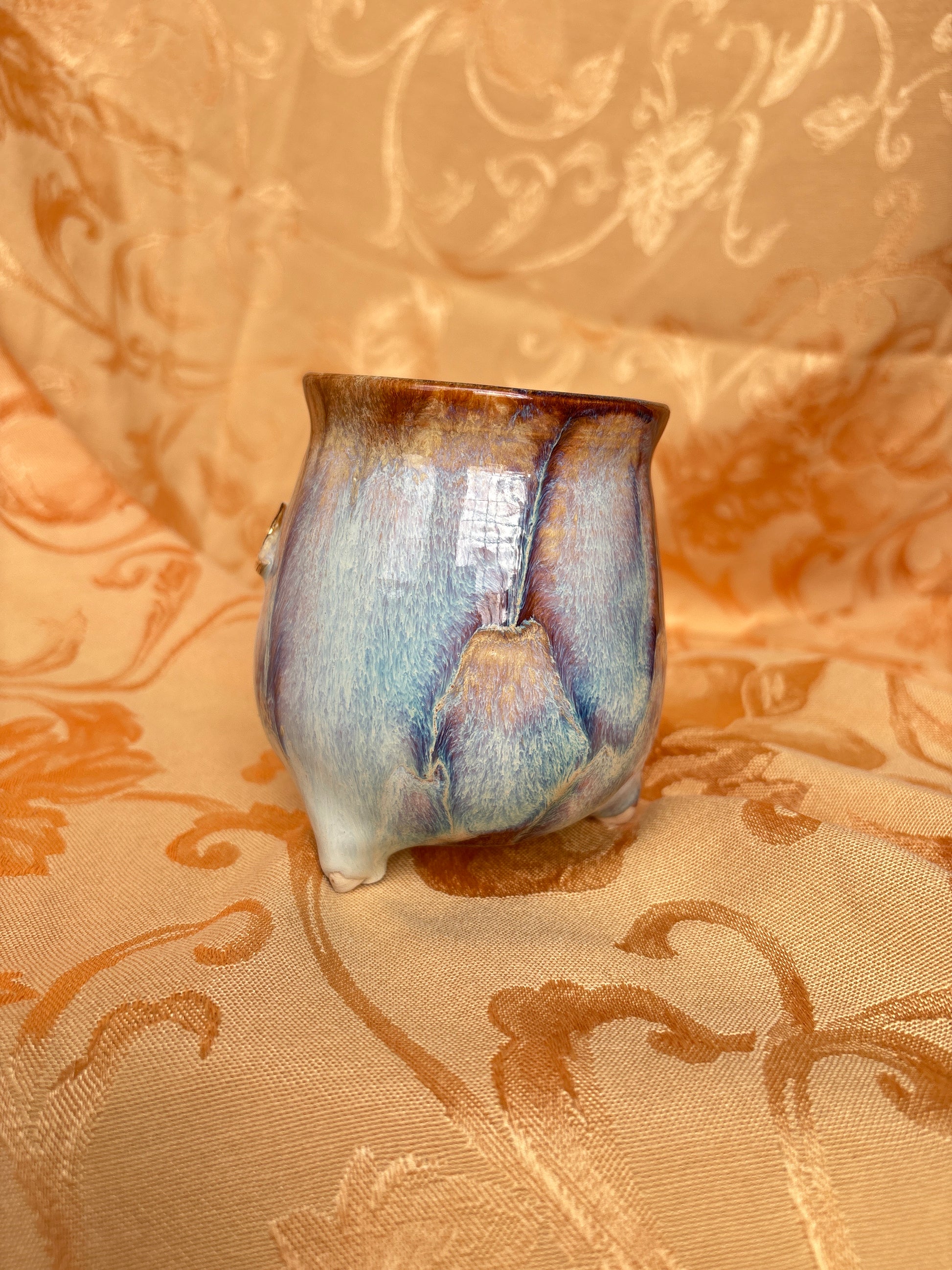 A vessel shaped by cosmic fire and shifting terrain. This cauldron mug swirls with the raw beauty of Mars: ribbons of earthen red, deep blue, and windswept tan, like ancient canyons traced by stardust and silence. It holds the energy of transformation, drive, and grounded strength; a quiet echo of the planet’s untamed spirit.