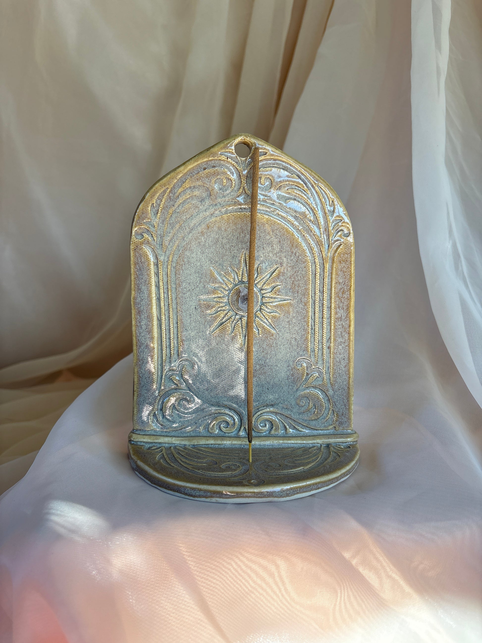 Honor your sacred spaces and corners with this handcrafted altar intended to function as a catalyst for your meditations, readings, and connections. Make offerings to your ancestors, set your intentions, or use as an incense holder to cleanse your space. Let it serve as a quiet catalyst for reflection and connection, bringing clarity and grounding to your practice.