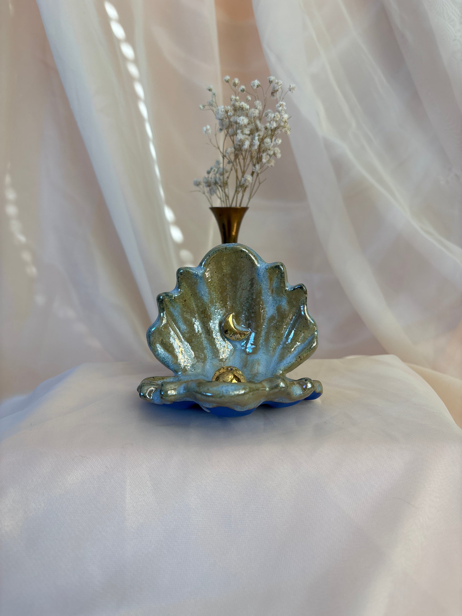 This handcrafted mini clay clam incense holder invites calm and focus into your sacred space. At the center is a 22k clay “pearl,” designed to hold your tarot card, incense and enhance your rituals. Perfect for meditation, readings, and setting intentions, it offers a meaningful way to reset the energy of your space. Let it serve as a quiet catalyst for reflection and connection, bringing clarity and grounding to your practice.