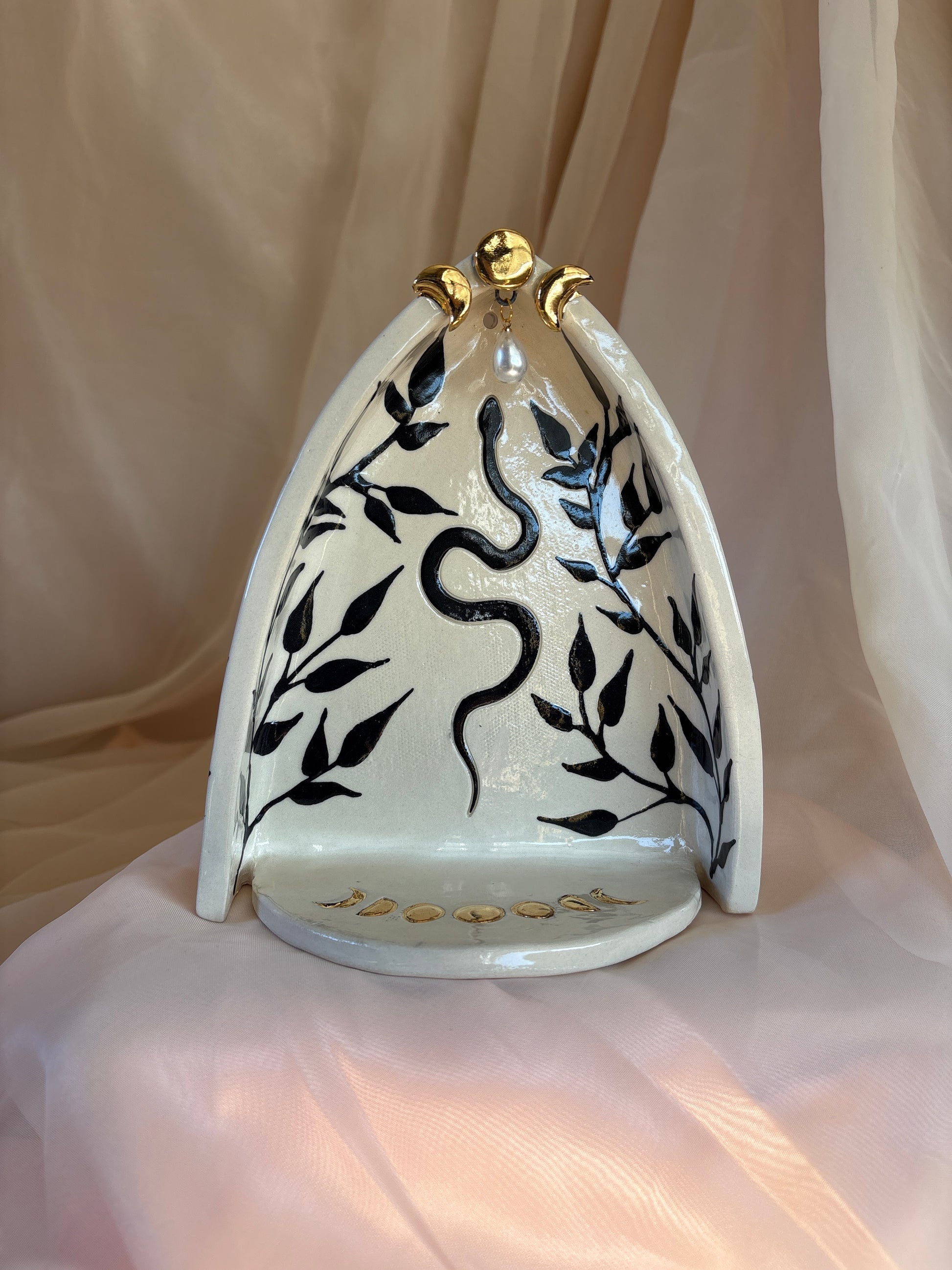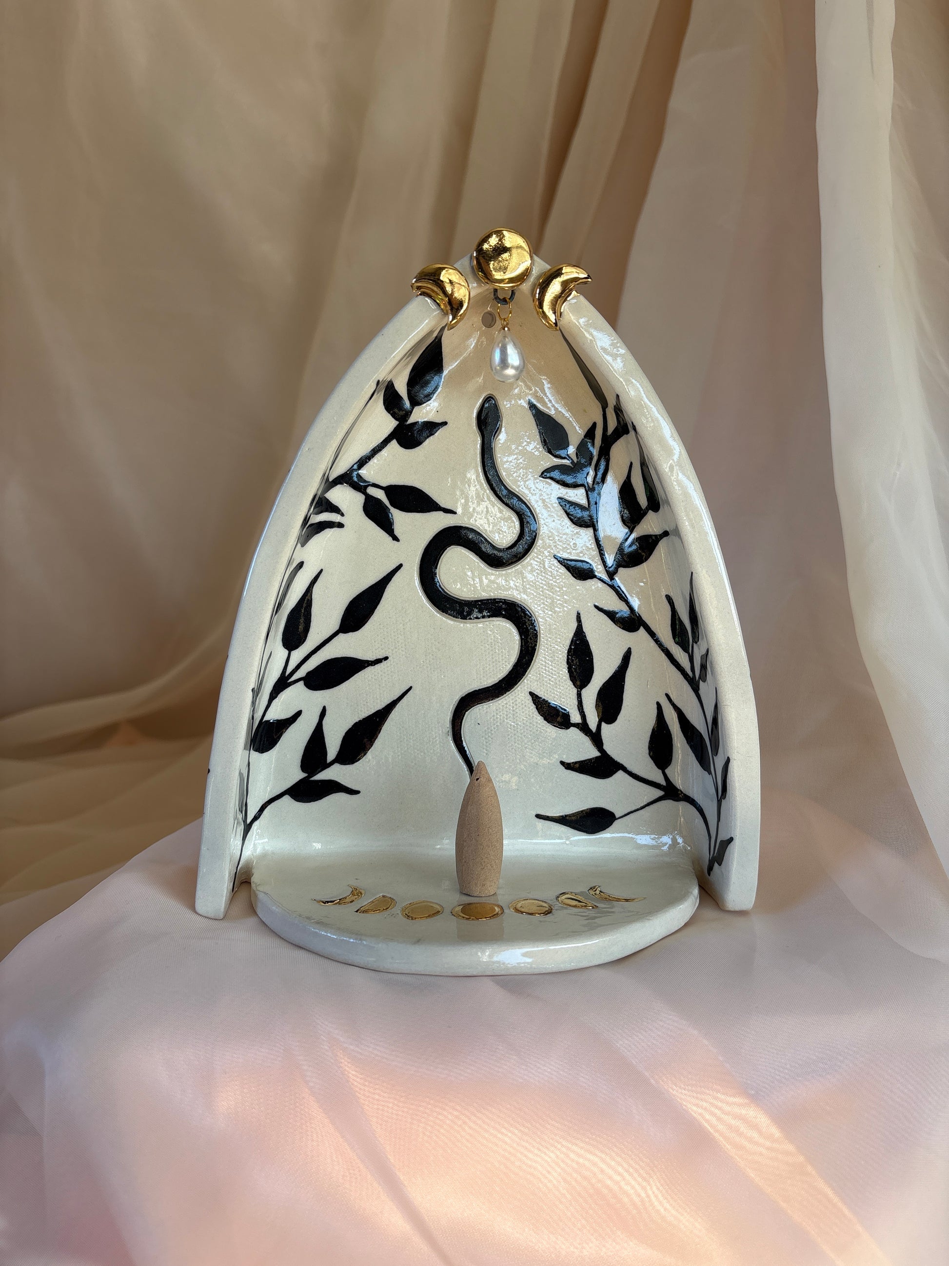 Honor your sacred spaces and corners with this handcrafted altar intended to function as a catalyst for your meditations, readings, and connections. Make offerings to your ancestors, set your intentions, or use as an incense holder to cleanse your space. Let it serve as a quiet catalyst for reflection and connection, bringing clarity and grounding to your practice.