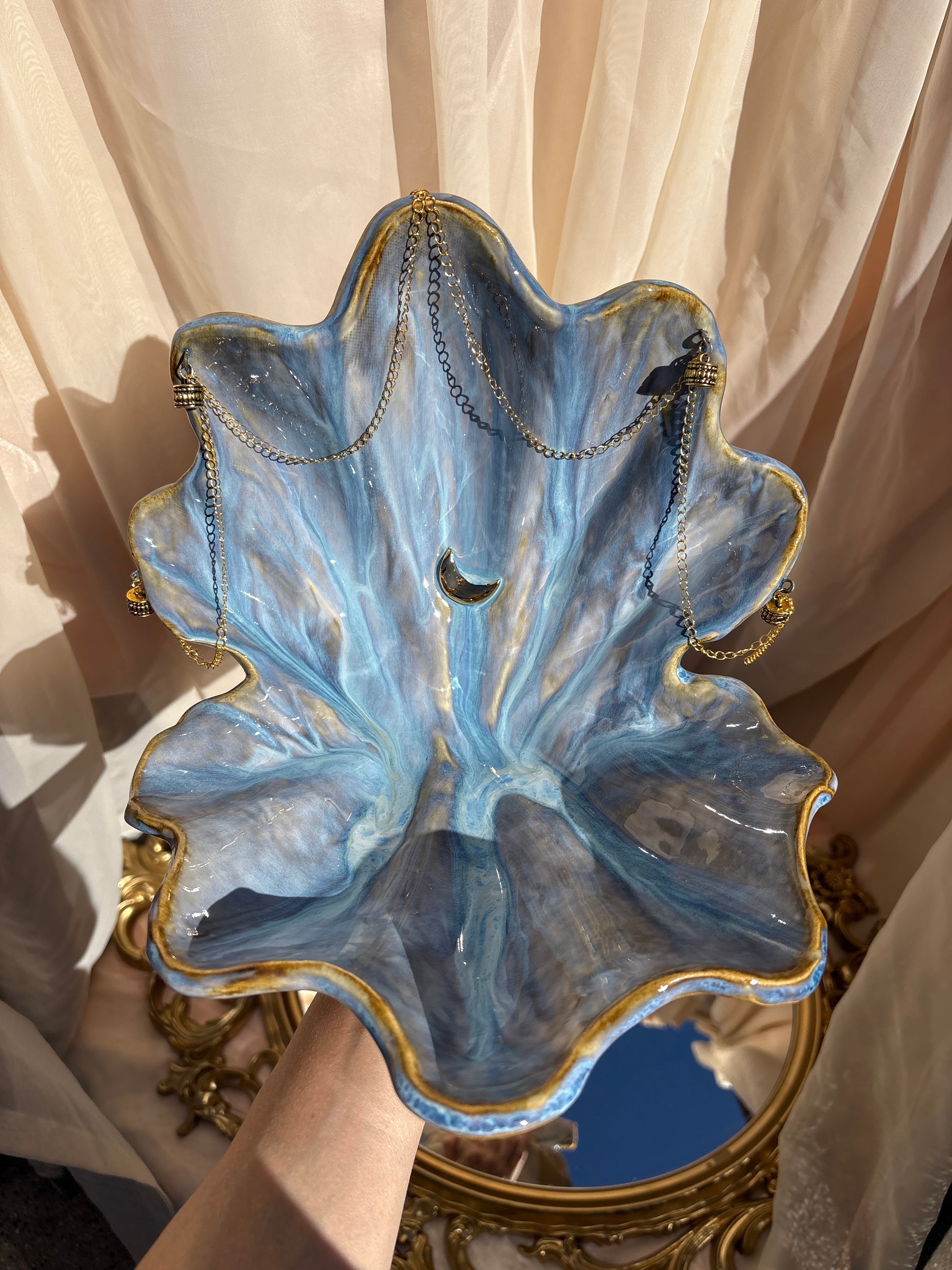 Invite the sacred tides of Aphrodite into your home with this handcrafted seashell altar; a vessel for reflection, intention, and connection. Designed to be a catalyst for your meditations, divination, and rituals, it serves as a space for offerings, intention-setting, or as an incense holder to purify and cleanse.