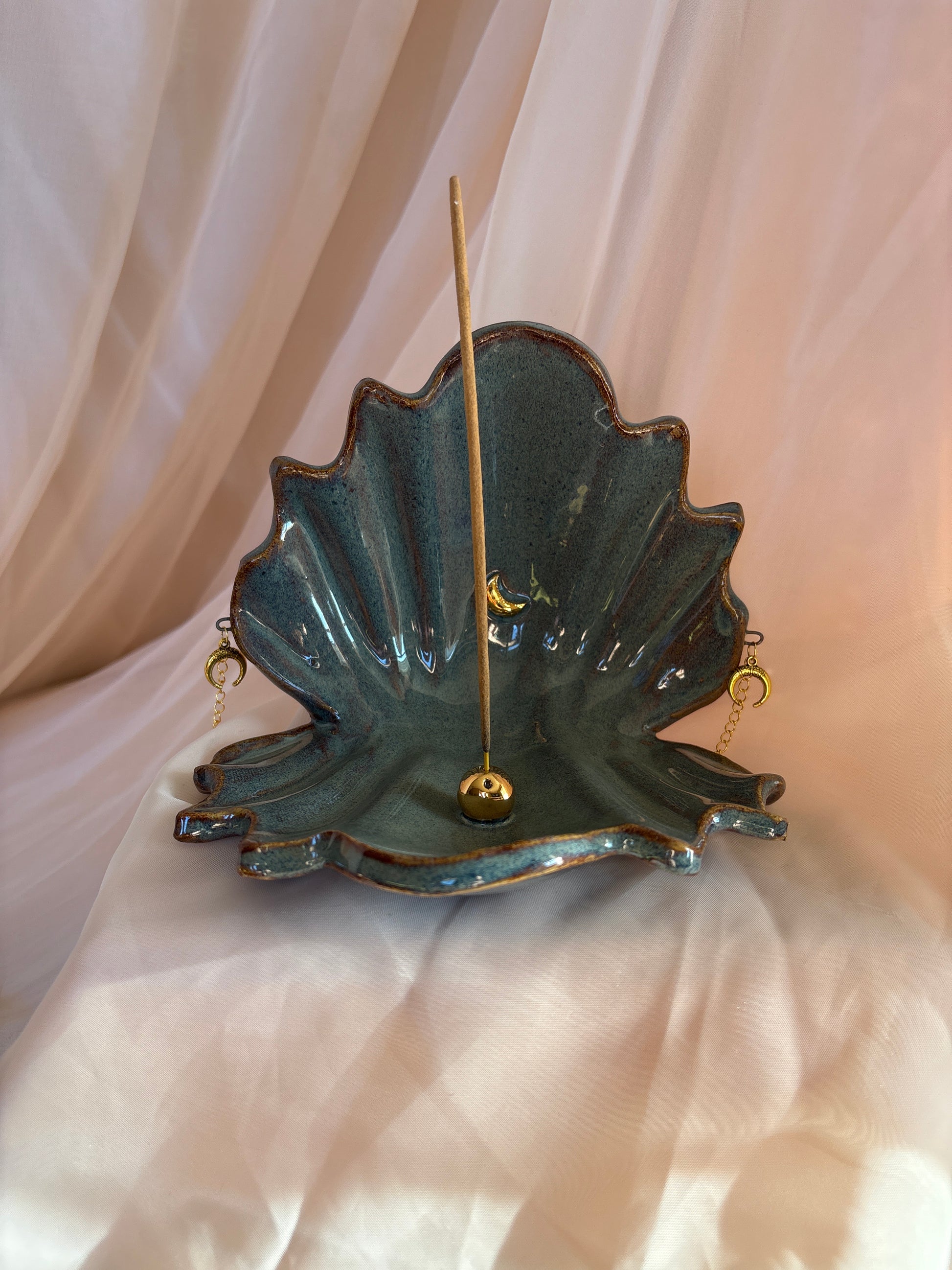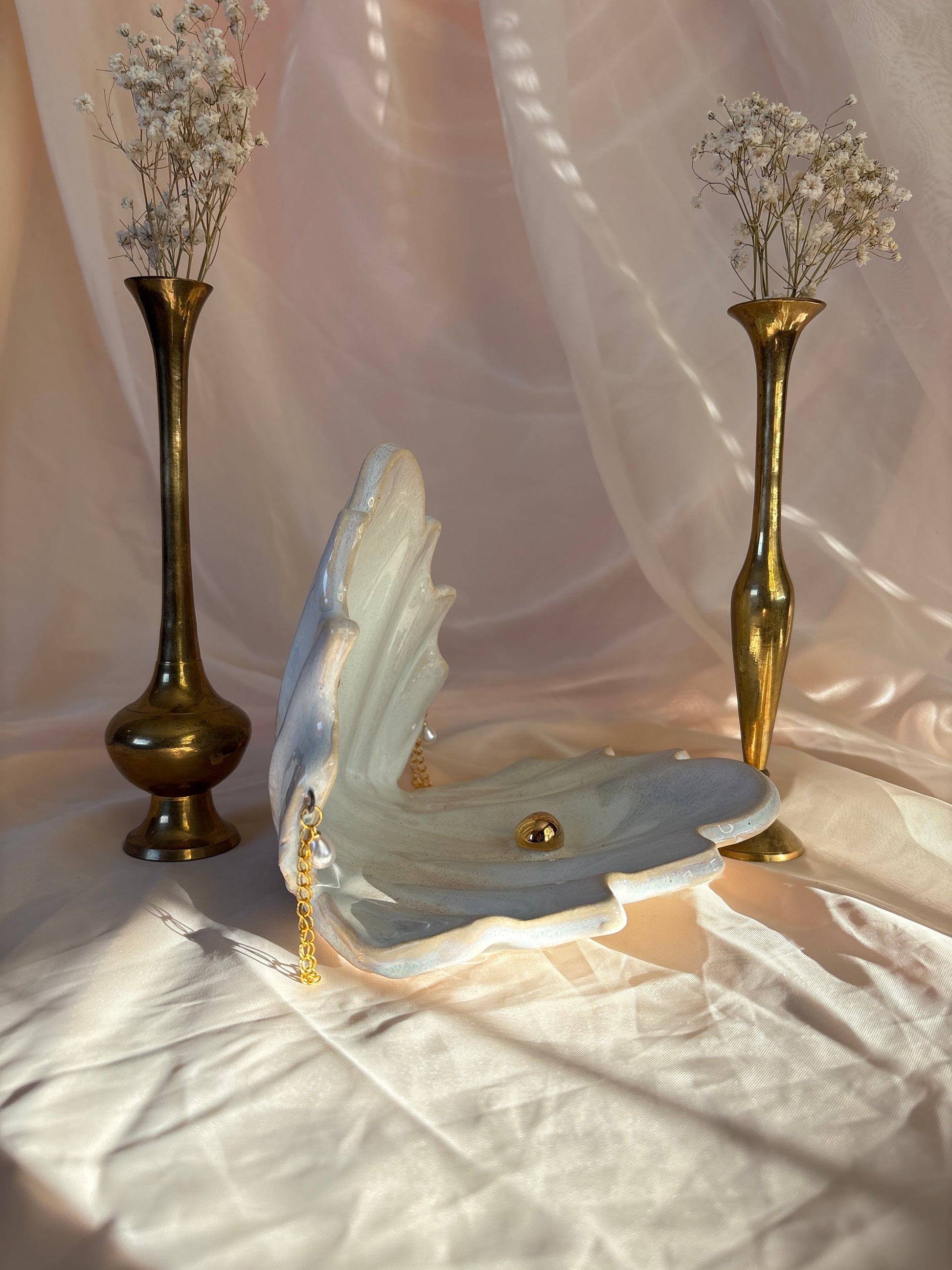 A gift from the mermaids and the water nymphs, forged in the deep for your sacred rituals. This handcrafted clay Altar invites calm and focus into your sacred space. At the center is a 22k clay “pearl,” designed to hold your tarot card, incense and enhance your private practices. Perfect for meditation, readings, and setting intentions, it offers a meaningful way to reset the energy of your space. Let it serve as a quiet catalyst for reflection and connection, bringing clarity and grounding to your practice.